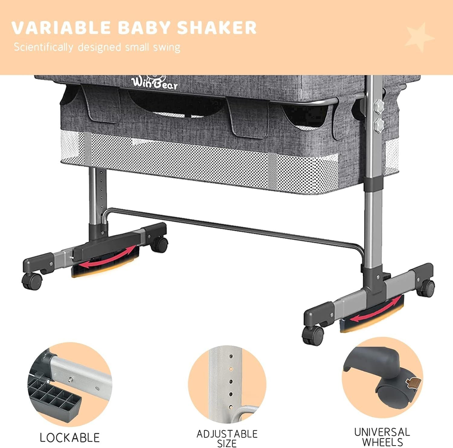 This baby bed can be raised unilaterally to prevent the baby from spilling milk. You can raise one side while feeding the baby, so that the baby can drink more comfortably.Variable cradle design, put down the rocking boards on both sides to turn into a baby cradle, the swing arc is controlled within the scientific range, and will not affect the baby’s sleep.