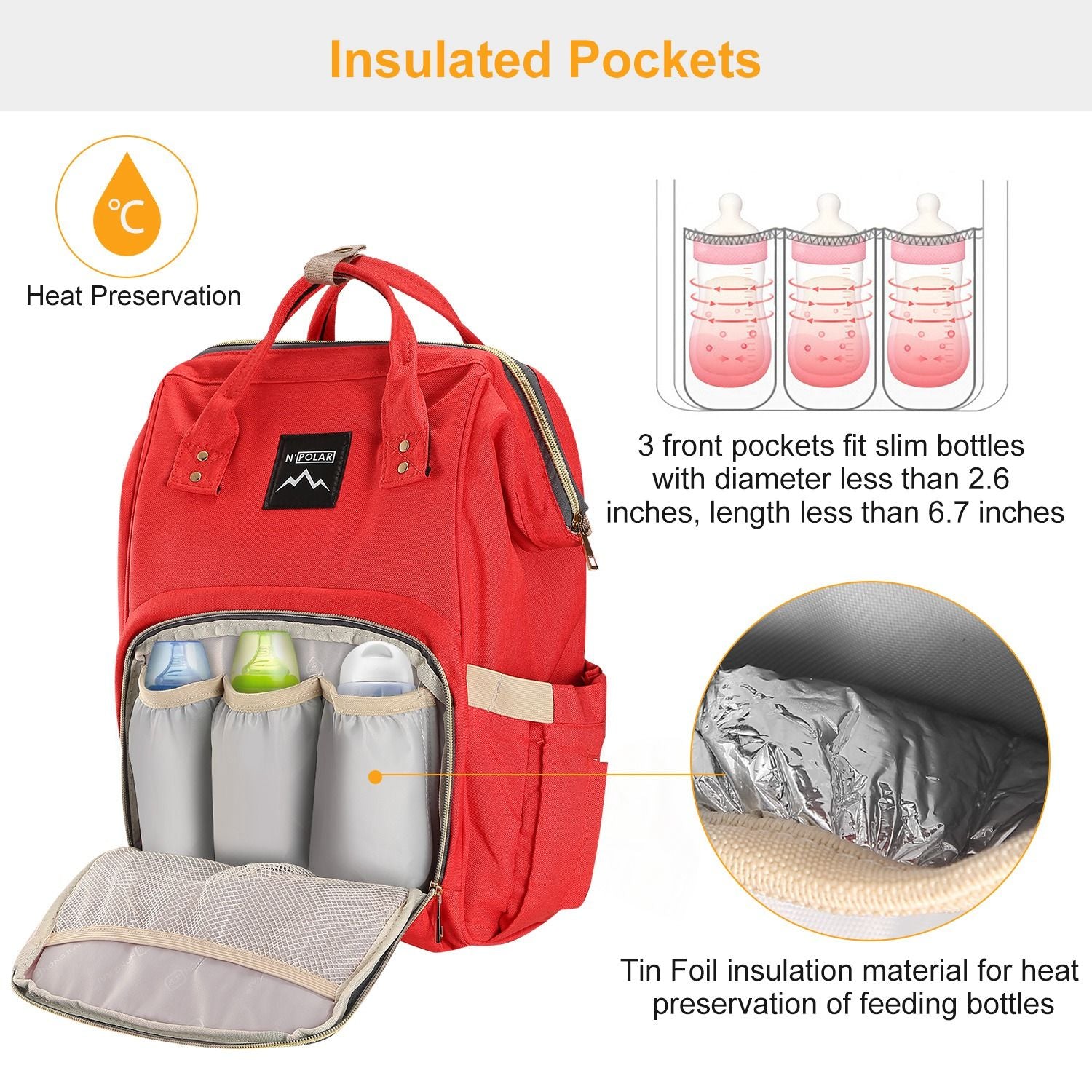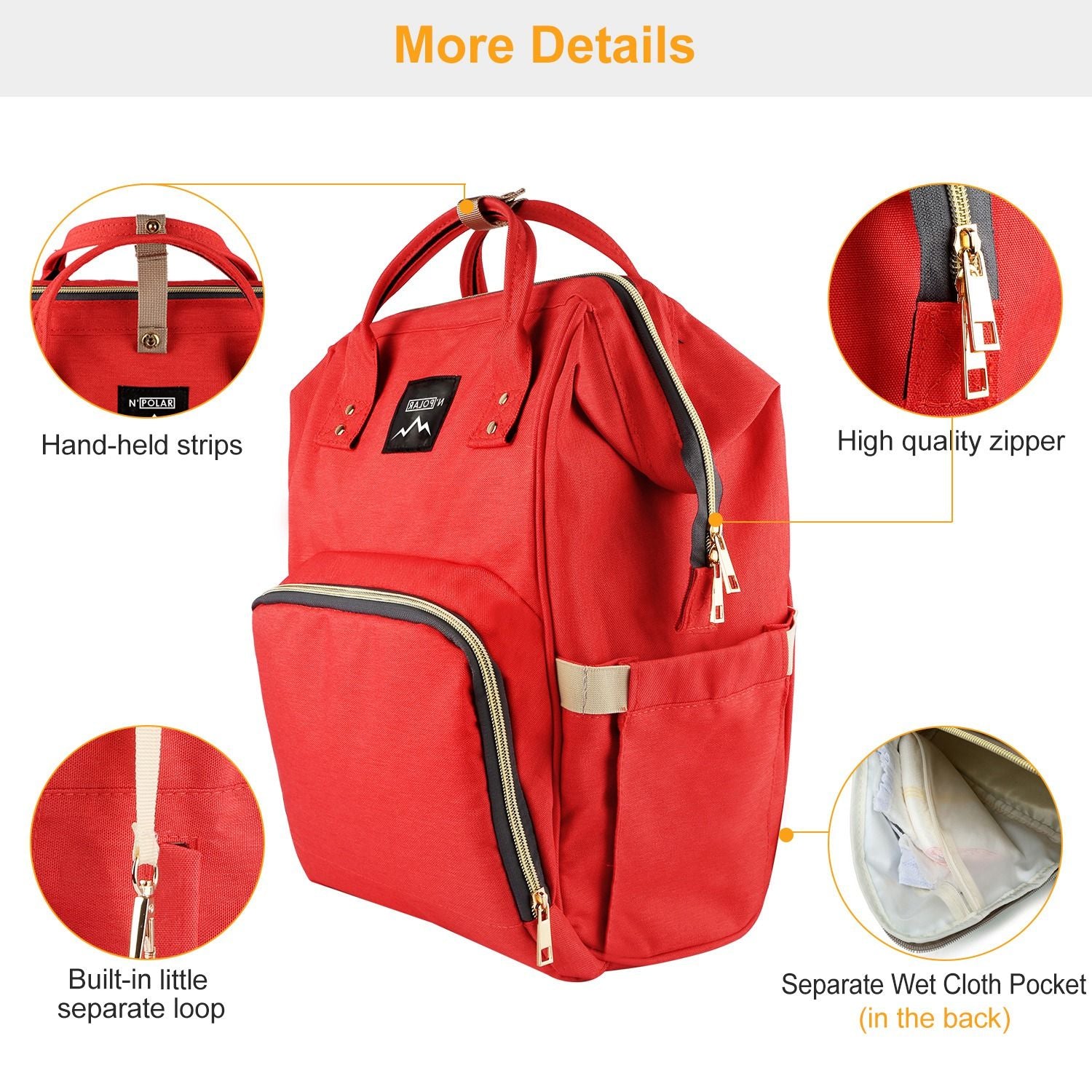**CONVENIENCE*:The pocket on the back of nappy backpack can easy access to items in the bottom of the bag,without digging through everything on top from the main opening on top. Bring your more convenience when struggling finding items in the bottom. Also,a special waterproof pocket is for storage of wet diapers or wet cloth.
