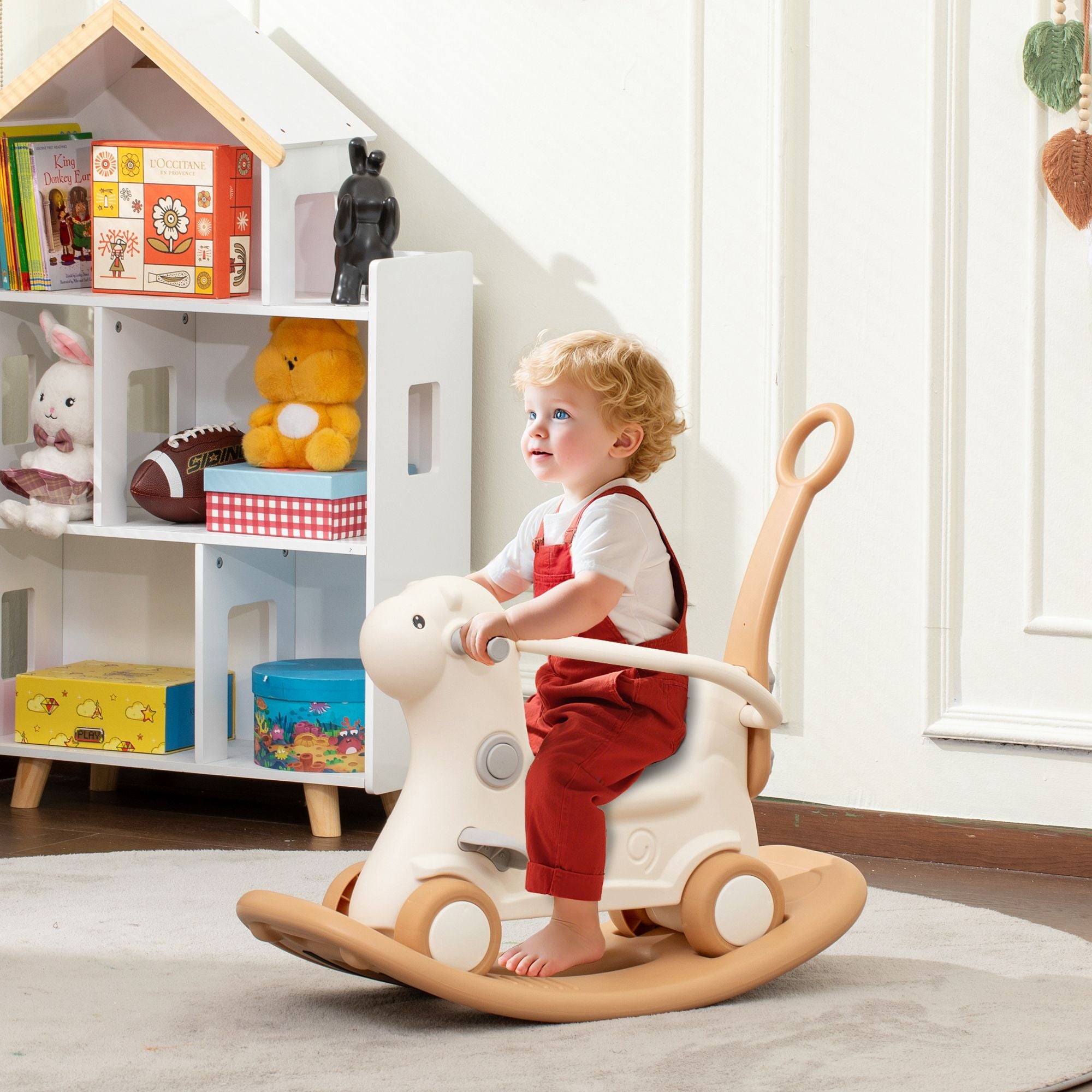 Set off on a delightful journey with the Qaba 4-in-1 toddler rocking horse! This adaptable toy shifts from a rocking horse to a push car, to a balance car and finally a balance board, sparking limitless entertainment. Featuring a comfortable seat and removable push handle and base, it's a great companion for your child, enhancing balance and coordination for toddlers aged 2-5.