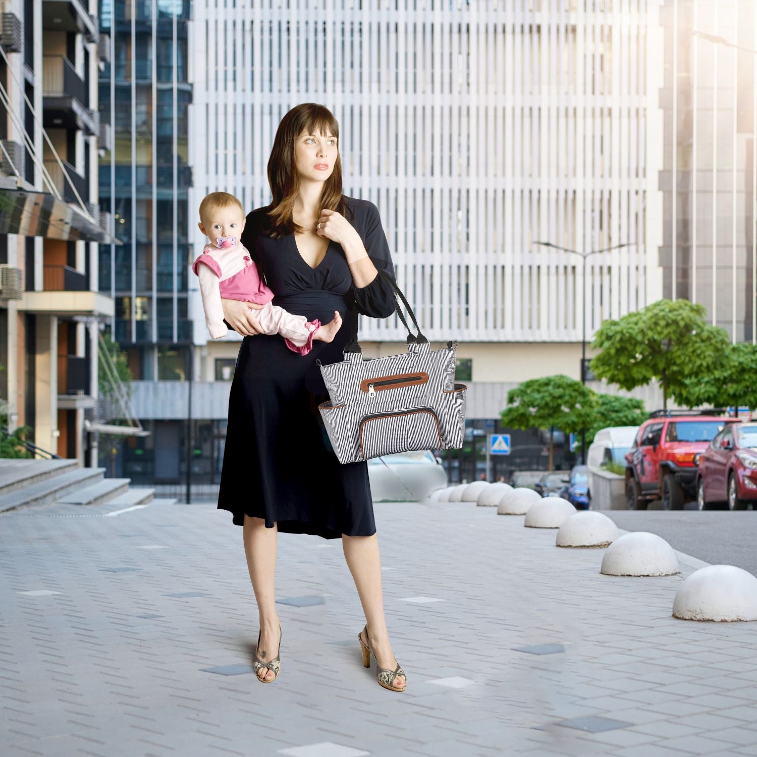 *Spacious Capacity*:Our medium-sized mummies bag provides a spacious storage for baby and mummy essentials. Contains 12 pockets in total,1 zipper pocket for tissue,phones or keys,1 front compartment for burp cloths,2 separate pockets for pacifiers,lipsticks or earphones,2 side pockets for umbrellas or water bottles,1 deep rear pocket for laptop,4 inner pockets for feeding bottles and 1 main compartment for baby clothes,milk powder cans or diapers. Different sizes of pockets allow you to organize all baby necessaries and your own belongings in order.
